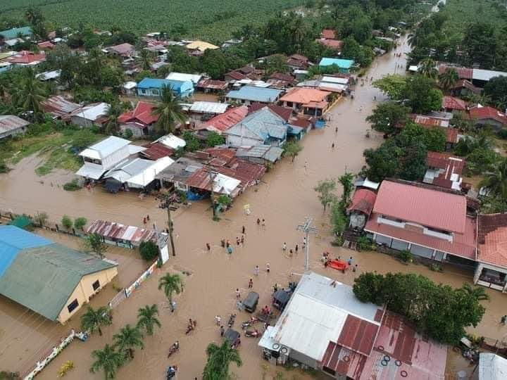 The aerial shot of the flooding in Barangay San Miguel, Santo Tomas, Davao del Norte. Photo by Santo Tomas MIO