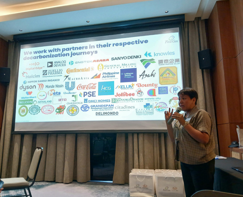 Charo Logarta Lagamon, the assistant vice president and deputy head of corporate communications of First Gen -Energy Development Corporation (EDC) shares to some members of the Davao media the current retail partners-customers of First Gen in MIndanao who opted to use renewable and low-carbon energy in their operations at Seda Hotel on Monday (Jan. 19).