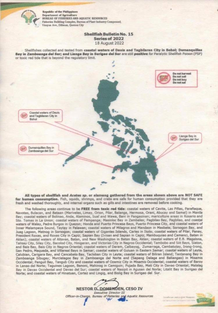 Batay sa Shellfish Bulletin No. 15 ng BFAR, sakop ng shellfish ban ang
