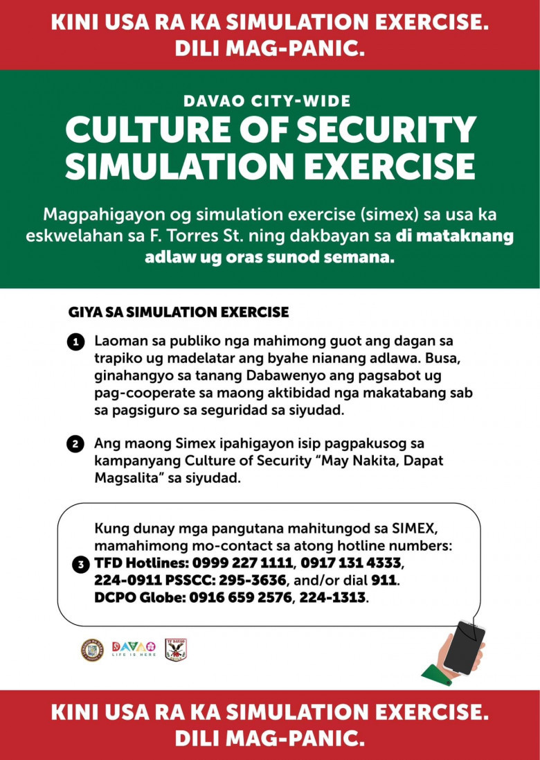 Sumagaysay urges Davaoeños to cooperate and be patient for any discomfort since there will be road and border closures as well as rerouting, which will result in traffic congestion during the exercise.