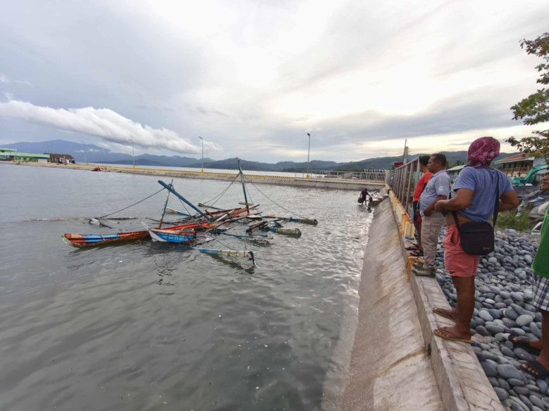 Naunlod ang usa ka banca nga panagat alas-12:30 sa udto Oktobre 17 sa shorelines sa Mati Fishport, Sitio Calagundian, Brgy. Central, Mati City, Davao Oriental.