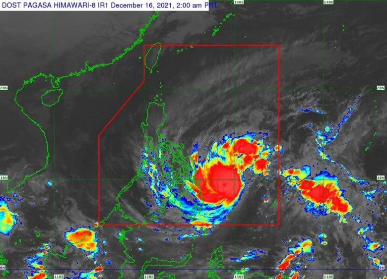 Location of Center (4:00 AM): The center of the eye of Typhoon “ODETTE” was estimated based on all available data including those from Hinatuan Doppler Weather Radar at 330 km East of Surigao City, Surigao del Norte (9.5°N, 128.5°E)